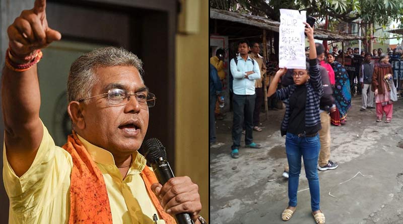 পাটুলি ফায়ার ব্রিগেডের কাছে ব্যারিকেড দিয়ে মিছিল আটকায় পুলিশ। সেখানেই তখন রাস্তার ধারের ফুটপাতে হাতে সিএএ, এনআরসি বিরোধী প্ল্যাকার্ড নিয়ে দাঁড়িয়ে ছিলেন ওই ছাত্রী। মিছিল শেষে ভাষণে দিলীপ ঘোষ বলেন, সারা দেশের পাশাপাশি পশ্চিমবঙ্গেও সিএএ লাগু হবে। কারও বাপের ক্ষমতা থাকলে আটকে দেখাক। রাজ্য বিধানসভায় সিএএ’র বিরোধিতায় প্রস্তাব পাশ হয়েছে। এ প্রসঙ্গে মুখ্যমন্ত্রী উদ্দেশ্য করে দিলীপ ঘোষ বলেন, সংবিধানের বিরোধীতা করছেন মুখ্যমন্ত্রী। এটা দেশদ্রোহিতা।