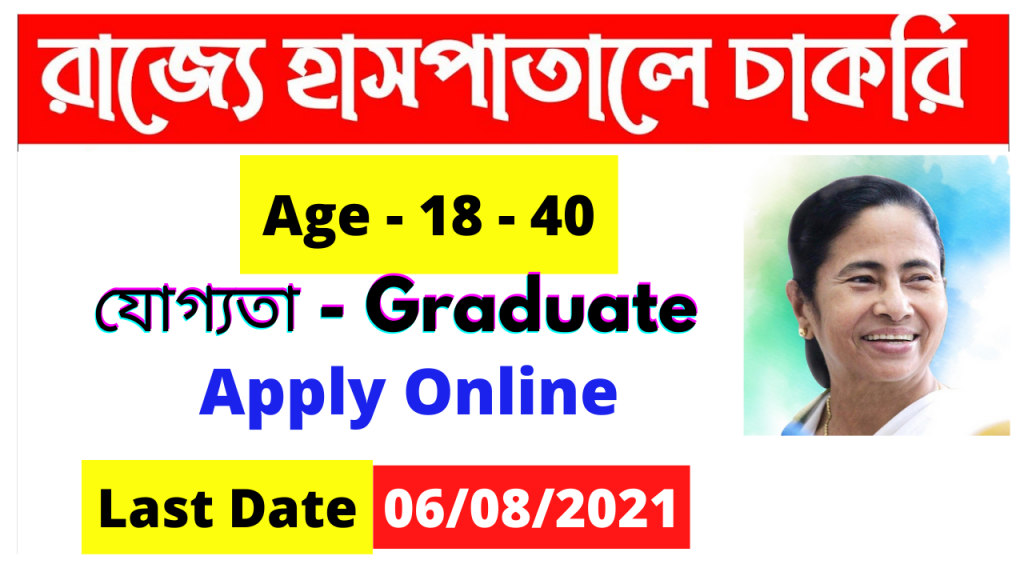 রাজ্যের একটি সরকারি হাসপাতালে Data Entry Operator পদে নিয়োগ করা হচ্ছে। এছাড়াও আরো অন্যান্য পদেও এখানে নিয়োগ করা হচ্ছে। এখানে আবেদন করার জন্য নিচে দেওয়া ফর্ম টি প্রিন্ট করে এবং সেটিকে সম্পূর্ণ ফিলাপ করে ই-মেল এর মাধ্যমে নিচে দেওয়া ই-মেল আইডি তে পাঠিয়ে দিতে হবে। আবেদন করার শেষ তারিখ হোলো ৬ ই আগষ্ট ২০২১