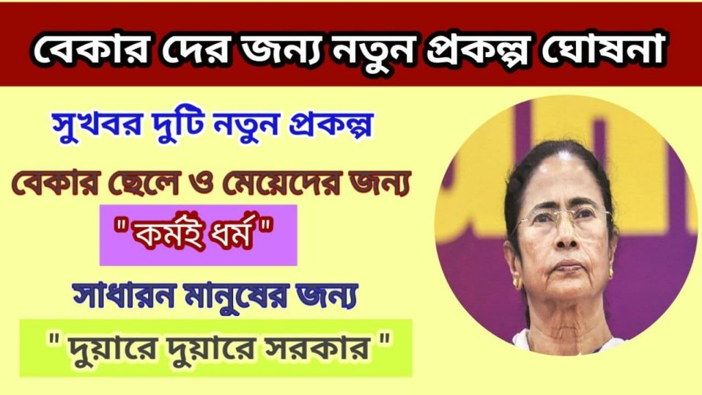 বেকার ছেলেমেয়েদের কথা ভেবে মাননীয়া মুখ্যমন্ত্রী মমতা বন্ধ্যোপাধ্যায় নতুন প্রকল্প ঘোষনা করলেন আজ ” কর্মই ধর্ম “ ,